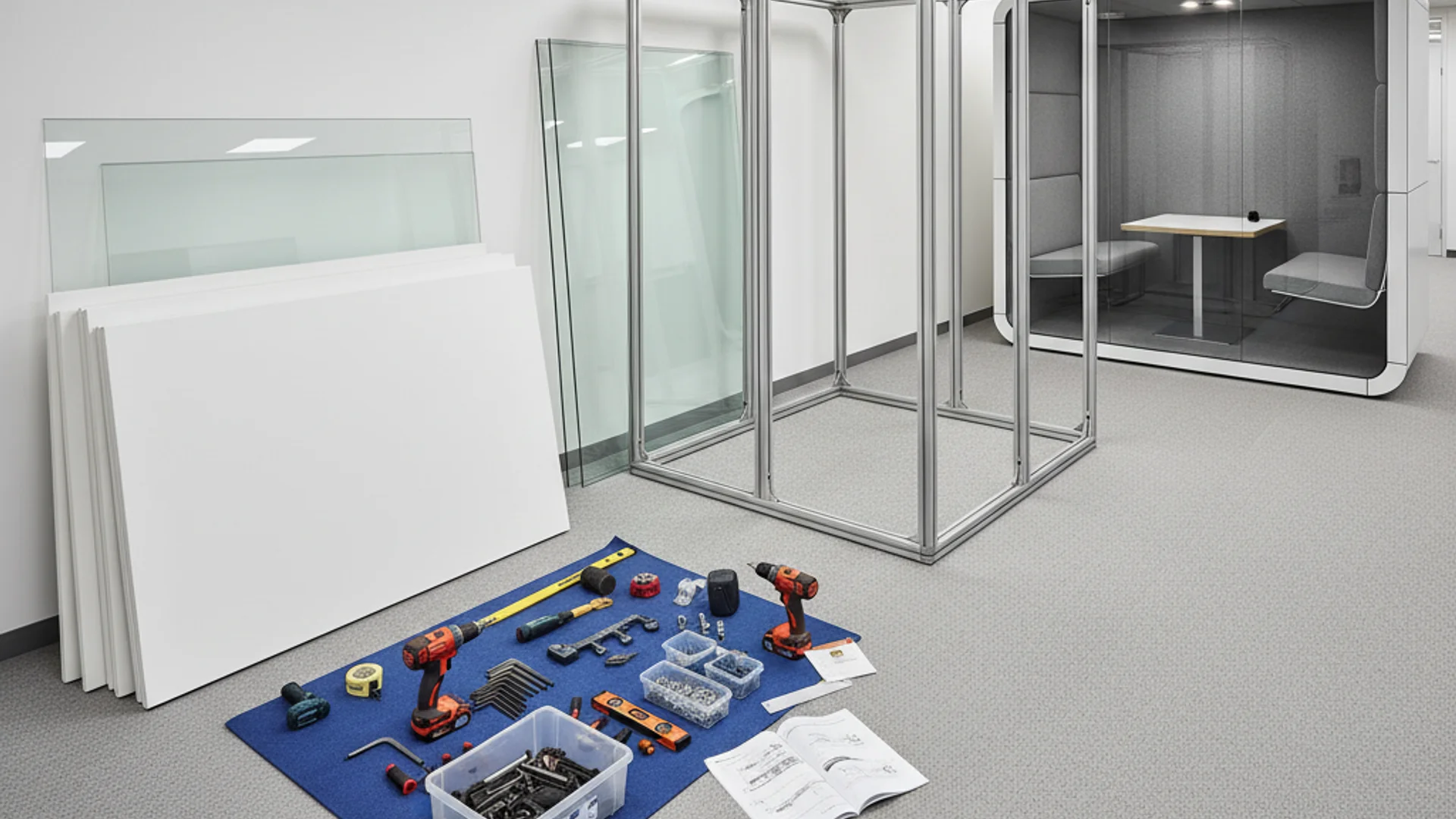 Встановлення офісної кабіни -- це проєкт, який потребує підготовки. Перевірка підлоги, стелі, електрики, пожежної безпеки та узгодження з керуючою компанією займають 2-4 тижні. Ці тижні варто витратити до замовлення кабіни, а не після.